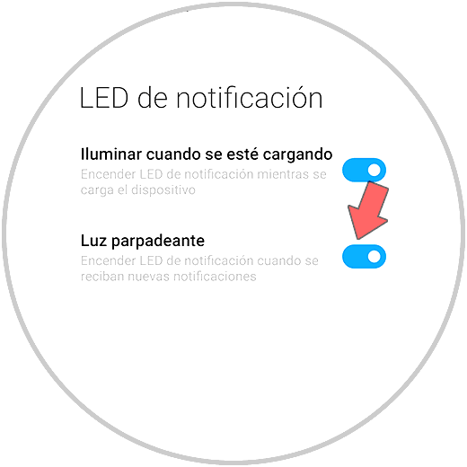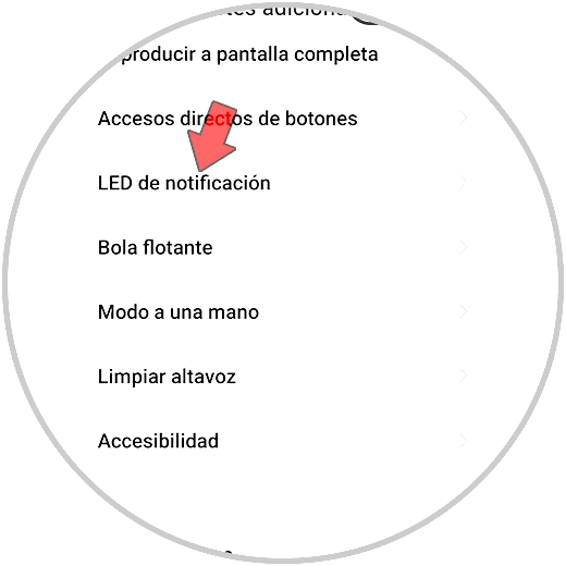 Ahora debes entrar en el apartado que pone "LED de notificaciones"