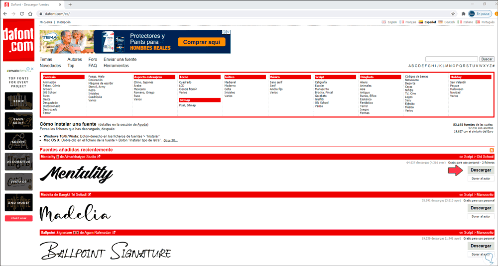 Al acceder a Dafont veremos lo siguiente: