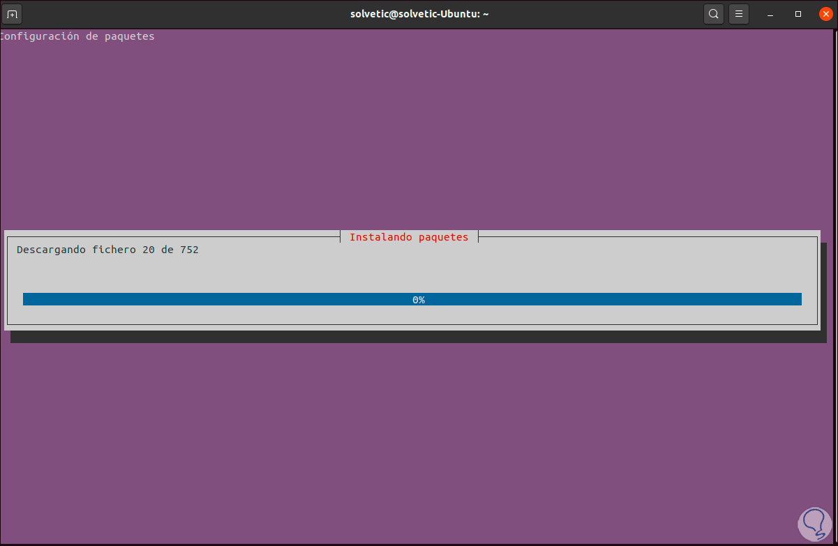Al pulsar Enter se iniciará un extenso proceso de descarga de todos los paquetes necesarios: