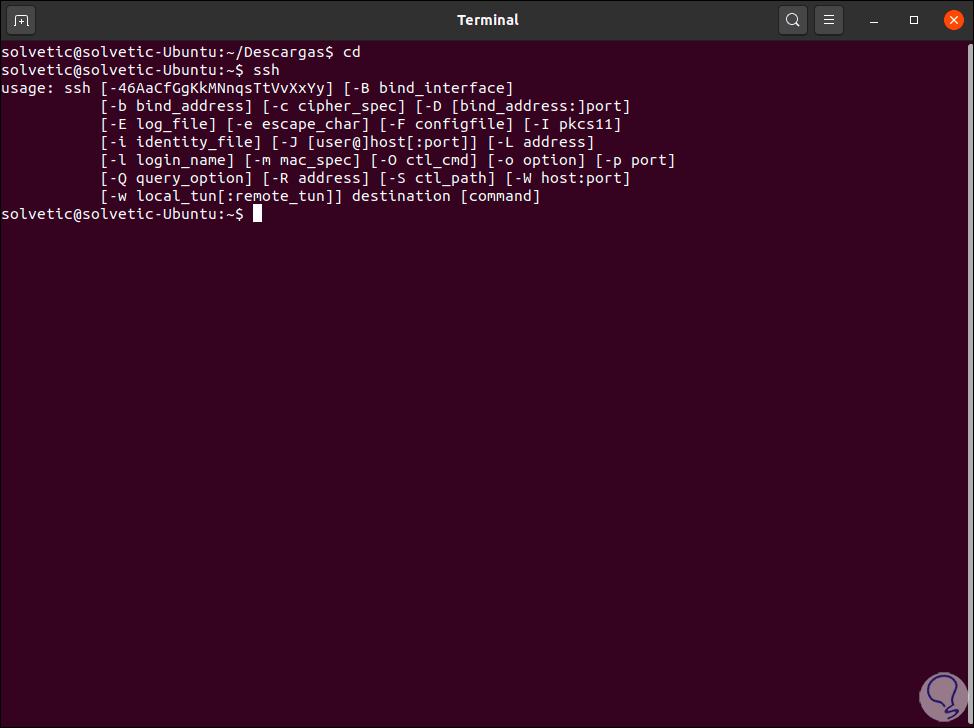 como resultado veremos todas las opciones de uso del protocolo SSH: