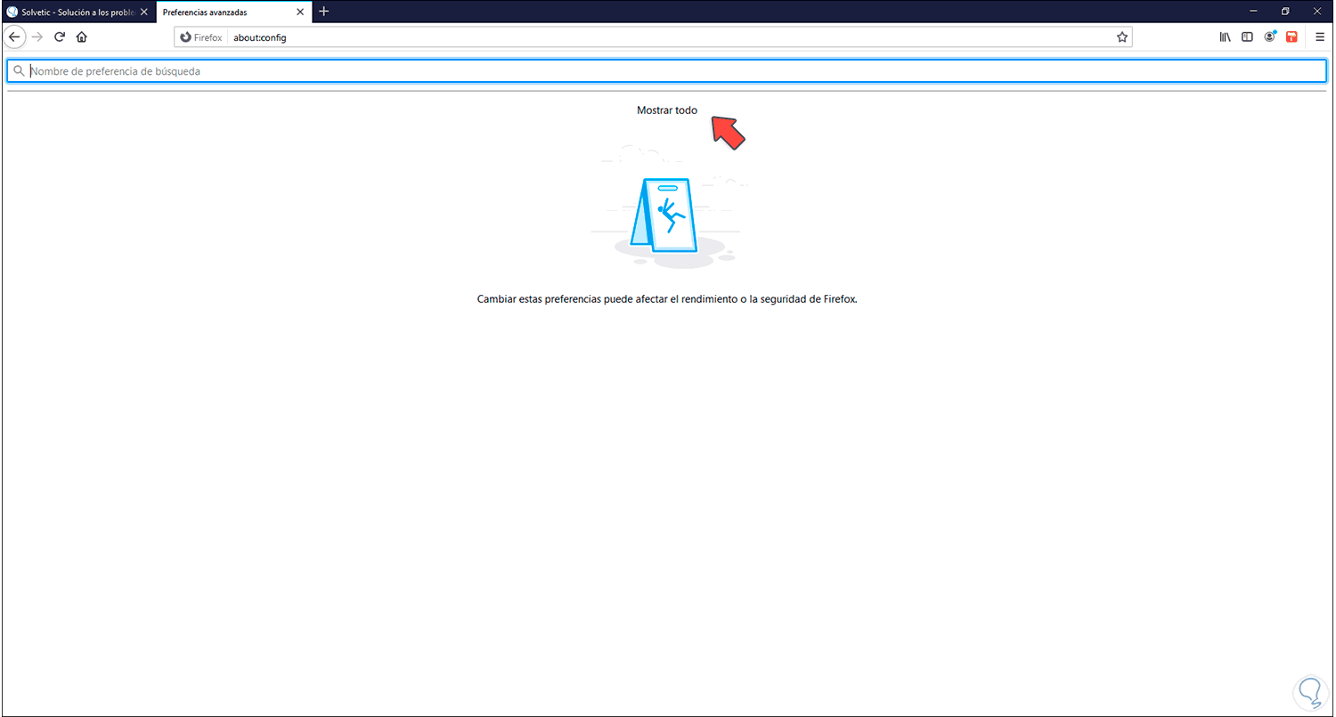 Damos clic en “Mostrar todo” en la parte superior y en el campo de búsqueda ingresamos lo siguiente: