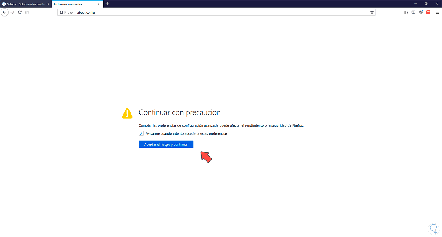 Damos clic en “Aceptar el riesgo y continuar” y ahora veremos lo siguiente: