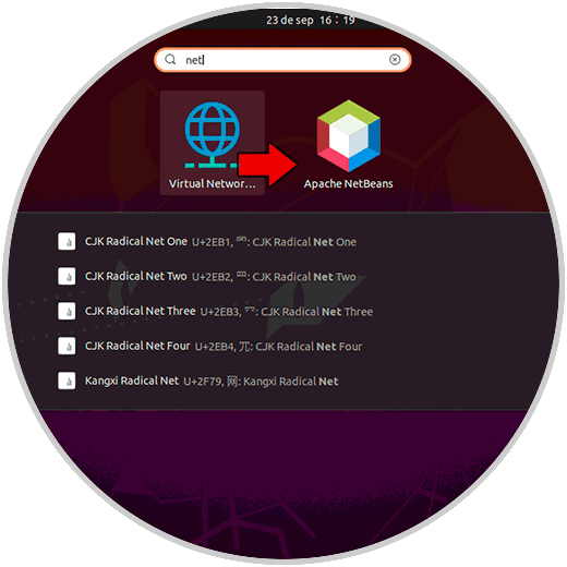 Vamos a Actividades y desde allí accedemos a NetBeans: