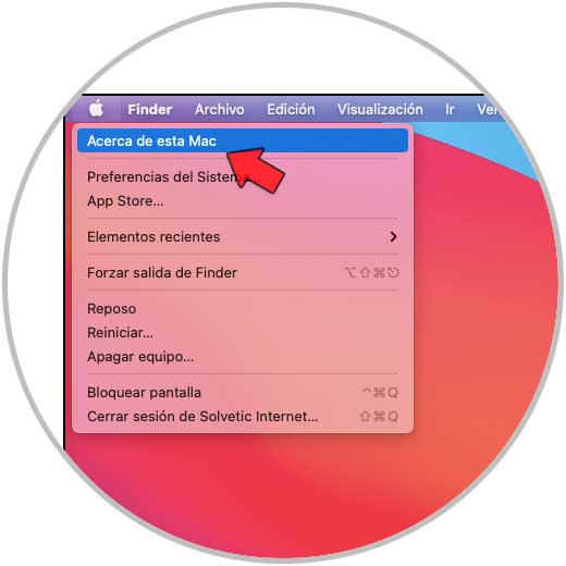 Para ver estas especificaciones iremos al menú Apple y allí damos clic en “Acerca de esta Mac”: