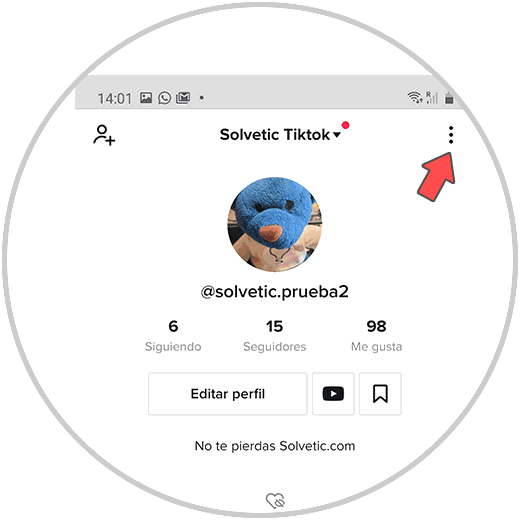 Lo primero que debes hacer es entrar en el apartado de tu perfil y pulsar sobre los tres puntos de la esquina superior.