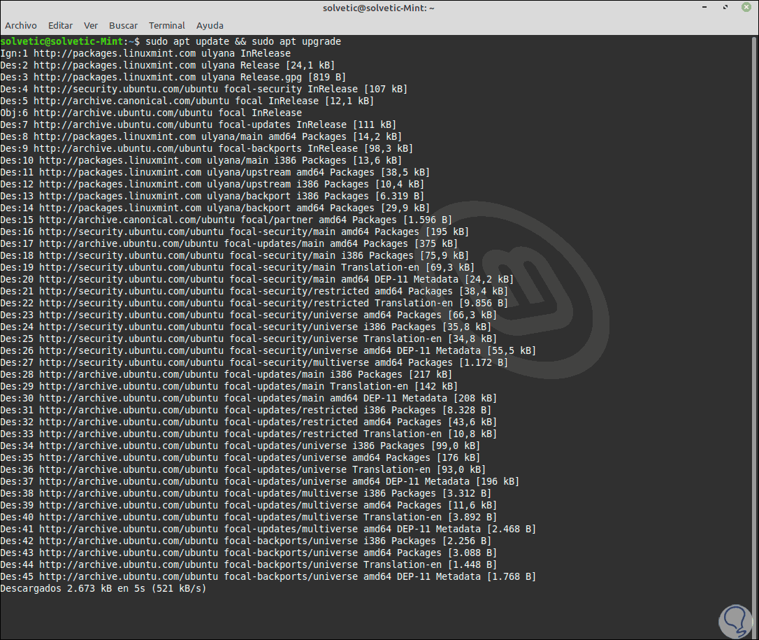 Para esto vamos a la terminal y actualizamos los paquetes del sistema con el siguiente comando: