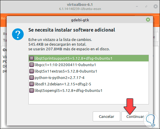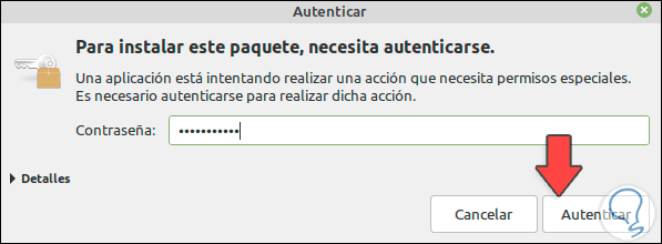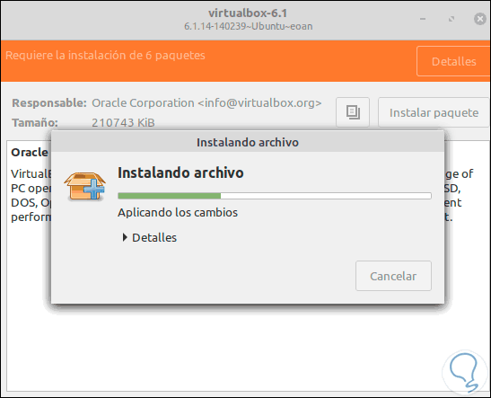 Damos clic en “Autenticar” y se iniciara el proceso de instalación de VirtualBox en Mint 20: