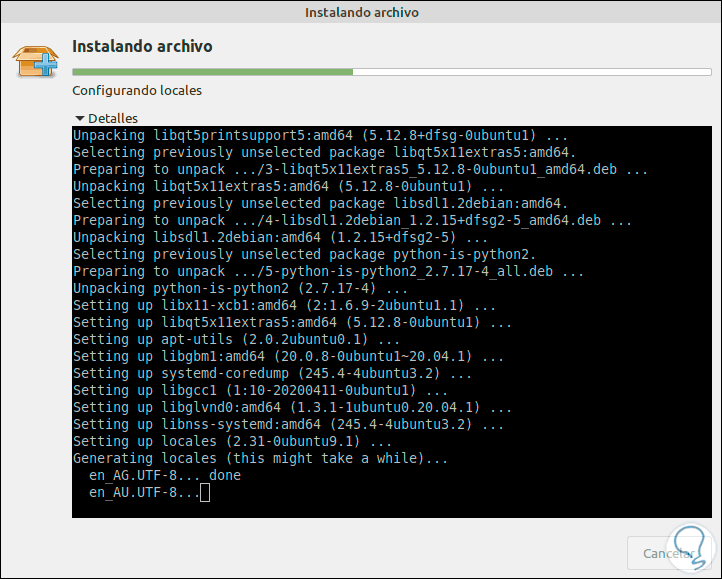 Podemos dar clic en “Detalles” para ver el proceso en consola: