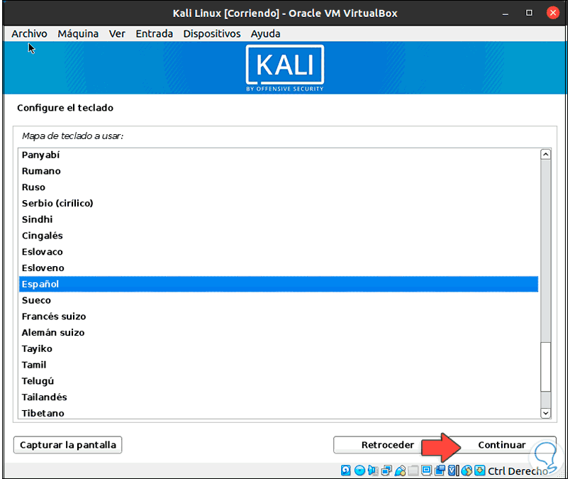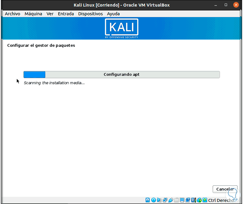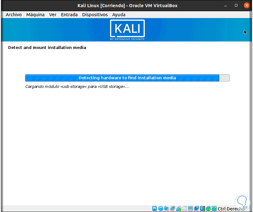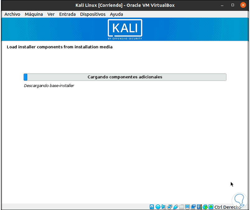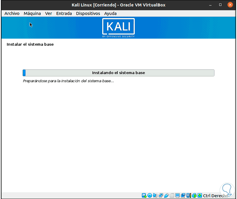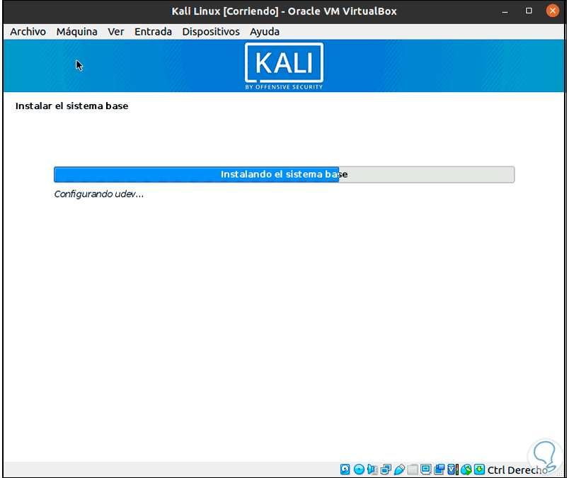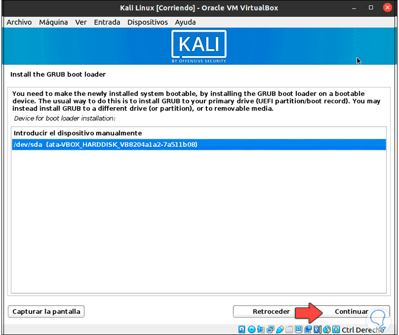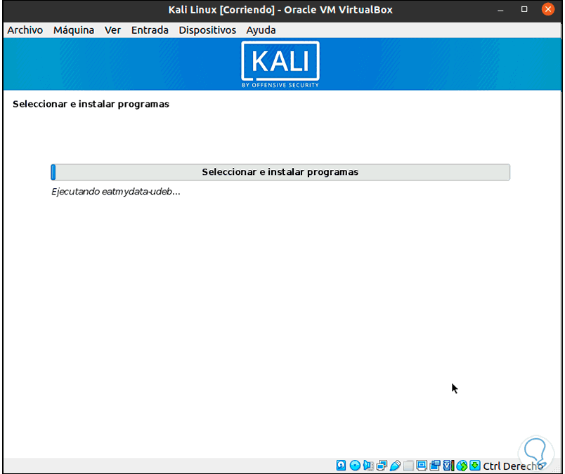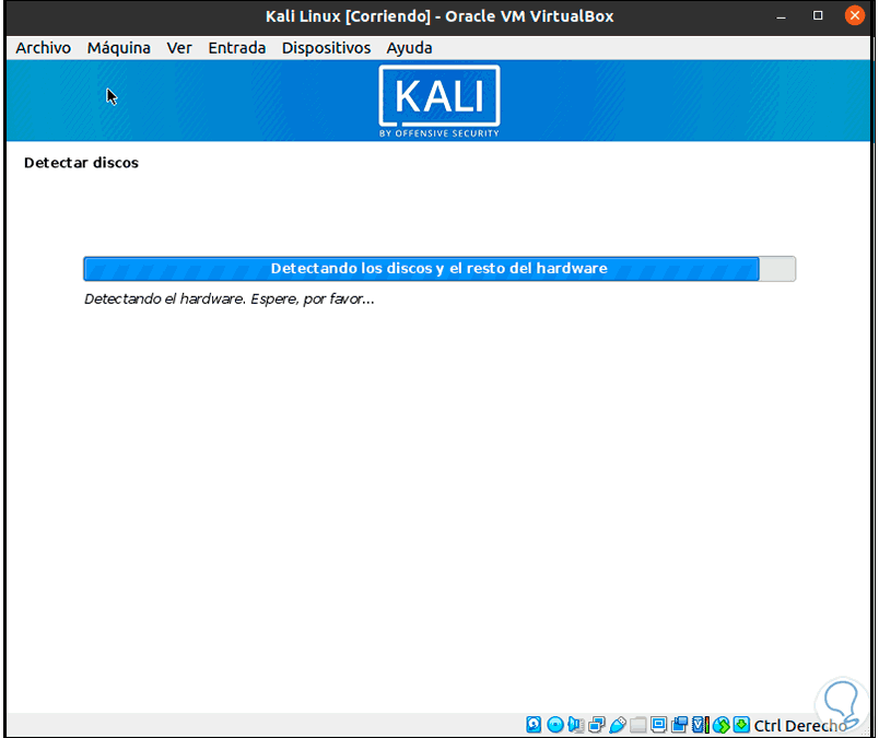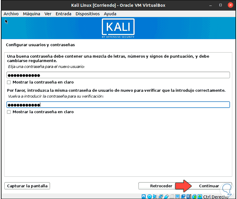 Después de esto entramos en la recta final de la instalación de Kali Linux en VirtualBox de Ubuntu: