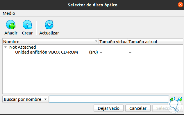Damos clic en Seleccionar para ejecutar la máquina virtual con esta imagen ISO: