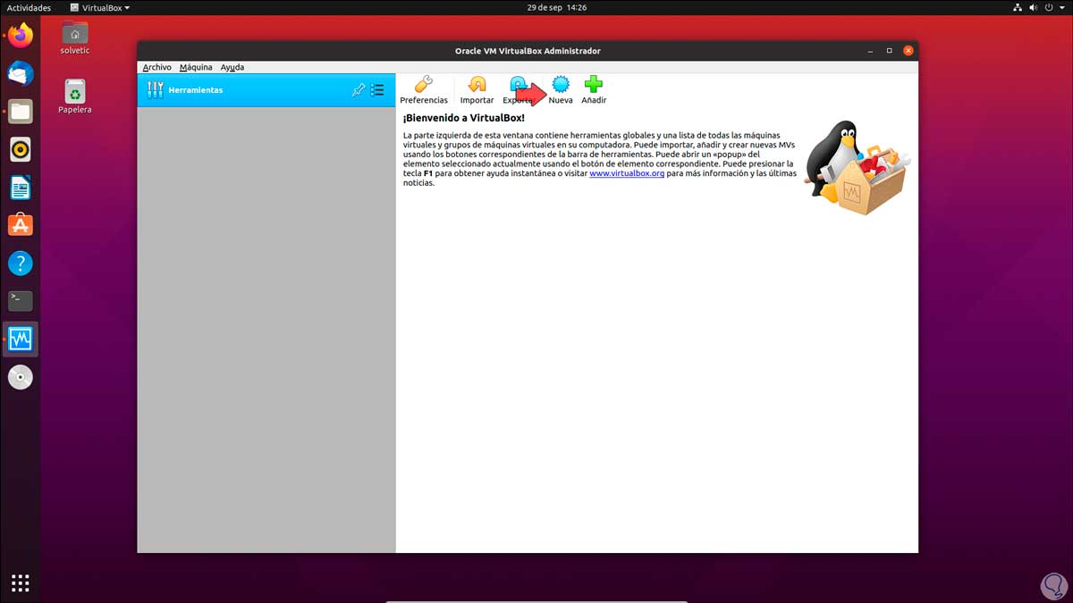 Se abrirá VirtualBox en Ubuntu 20.04: