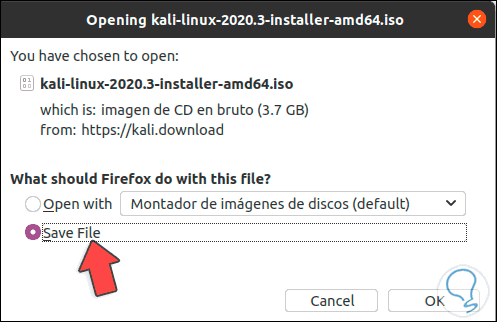 Al dar clic allí guardaremos la imagen ISO localmente: