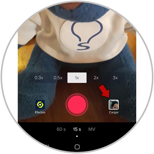 Lo primero que debes hacer es entrar en tu cuenta de TikTok y pulsar sobre el icono de "+" de la parte inferior.