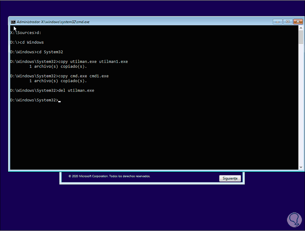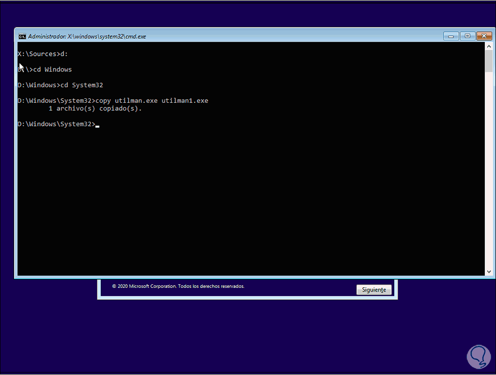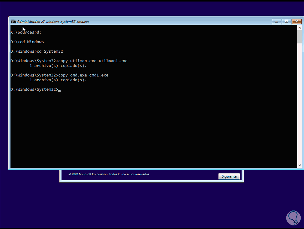 cd Windows cd System32 copy utilman.exe utilman1.exe