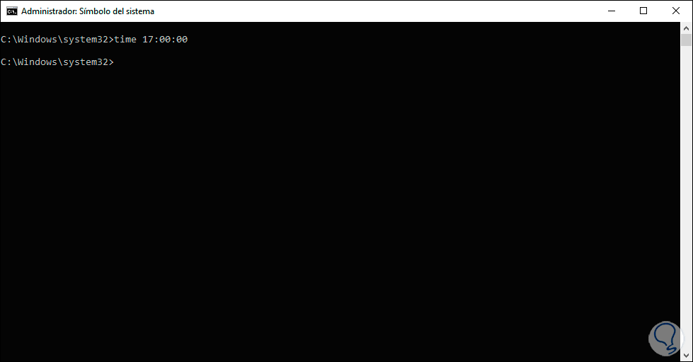 Después de esto accedemos al símbolo del sistema como administradores y para cambiar la hora podemos usar el formato de AM o OM con la siguiente sintaxis: