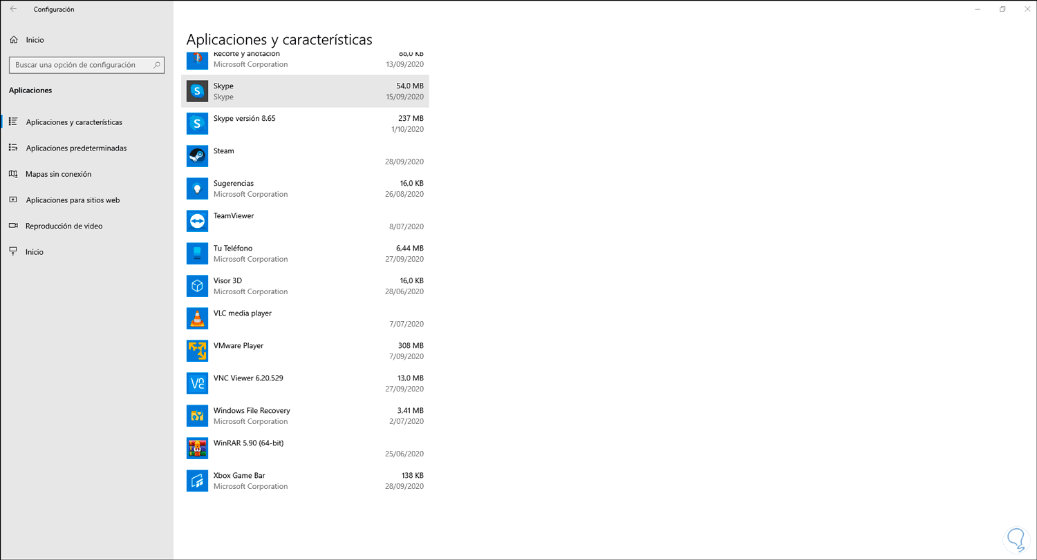 - Programas y características