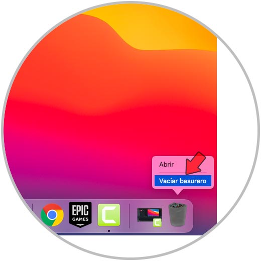 Después de esto damos clic derecho sobre el la Papelera y seleccionamos “Vaciar basurero”: