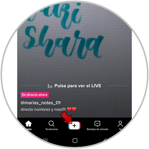 Lo primero que debes hacer es entrar en tu cuenta de TikTok y pulsar en el símbolo de "+" para seleccionar que quieres subir un vídeo.