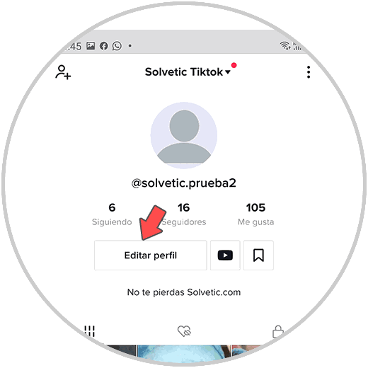 Ahora entre en tu cuenta de TikTok y pulsa en "Editar perfil"