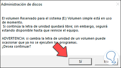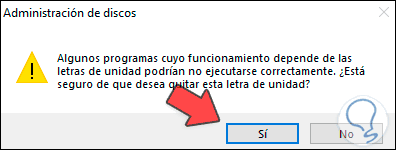 En la ventana de advertencia damos clic en Si y recibiremos una nueva advertencia sobre los riesgos de quitar dicha letra: