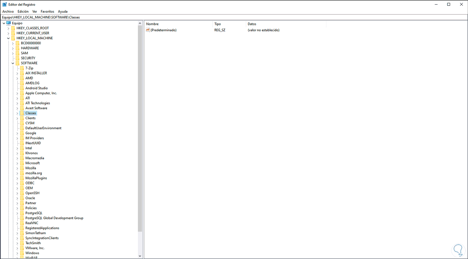 Podemos ver que esta clave ha sido eliminada de los registros de Windows 10: