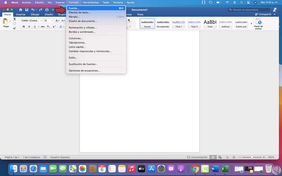 De forma alterna podemos seleccionar el texto o número a editar, vamos al menú “Formato -Fuente”: