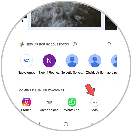 Ahora verás las opciones de compartir. En el caso de que no aparezca Instagram, pulsa sobre "Más"