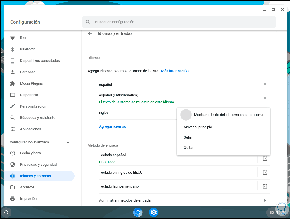 Con este método podemos establecer el idioma deseado para Chromebook según sea nuestra necesidad de uso actual.