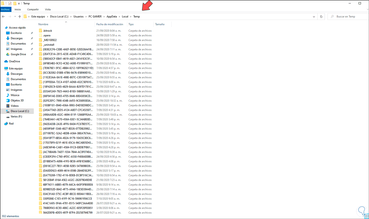 2. Abrir carpeta Temp Windows 10 desde Explorador
