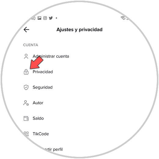 Ahora tienes que entrar en el apartado de "Privacidad"