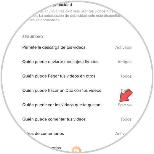 Una vez dentro de la privacidad, debes seleccionar dentro de "Seguridad" la parte de "Quién puede ver los vídeos que te gustan"