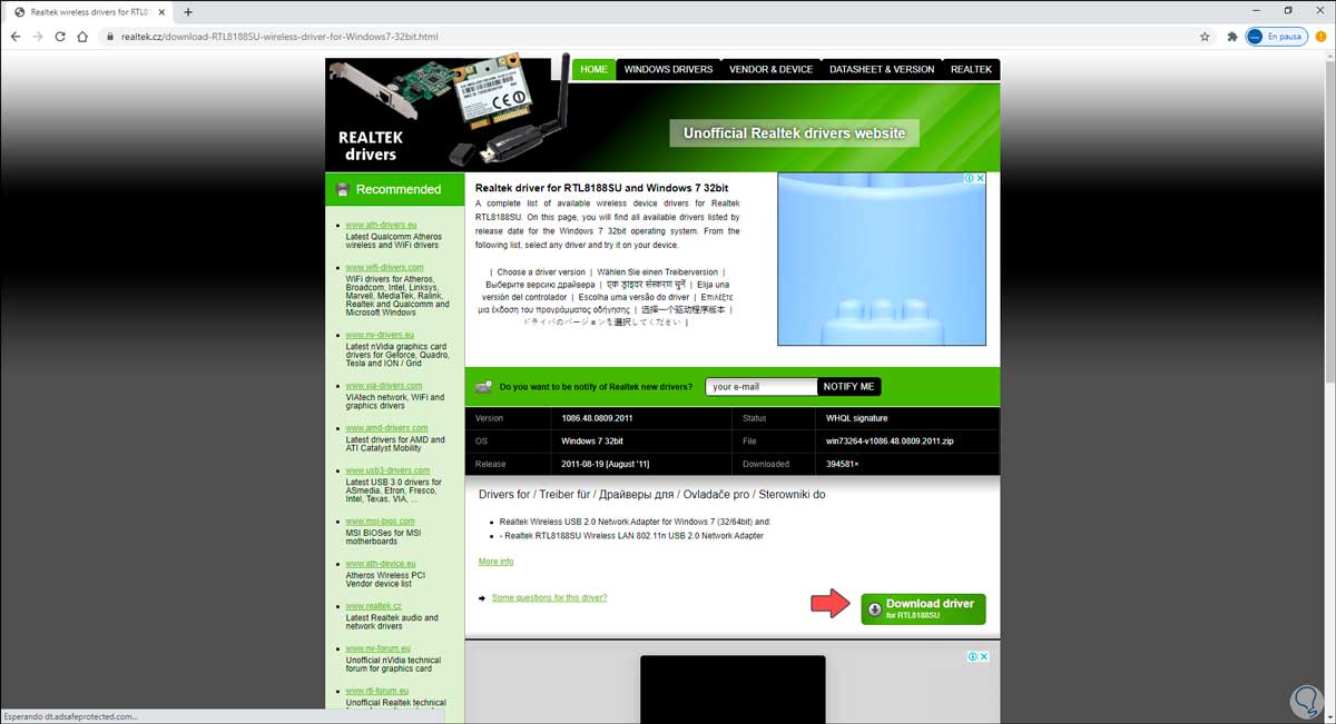 Solvetic te aconseja ubicar el sitio del desarrollador donde encontraras detalles mas completos de este controlador. Allí identificamos de qué tipo es, su tamaño, versión, etc.
