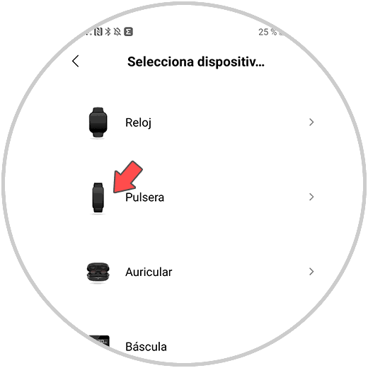 Ahora verás varias opciones disponibles para vincular. En este caso debes pulsar sobre "Pulsera"