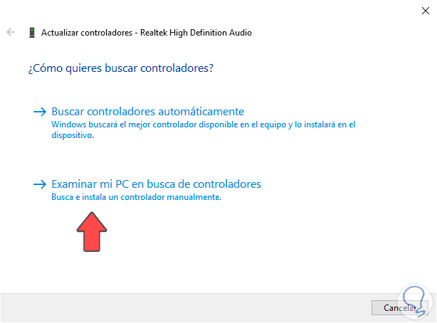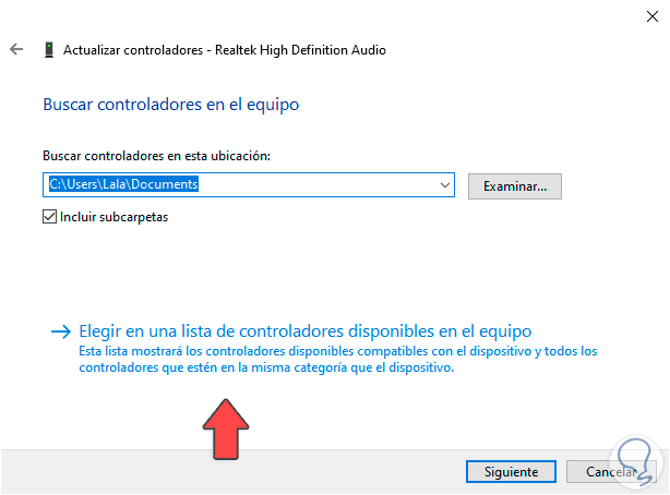 Damos clic sobre la opción “Examinar mi PC en busca de controladores” y luego veremos la siguiente ventana: