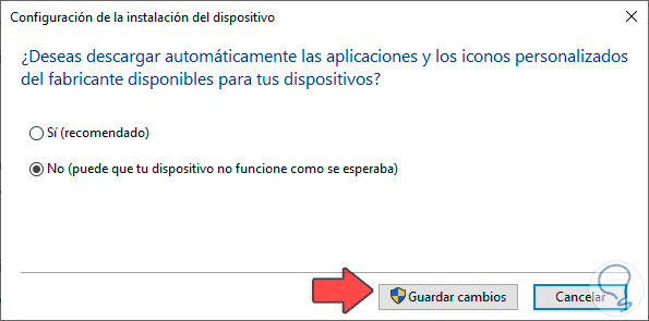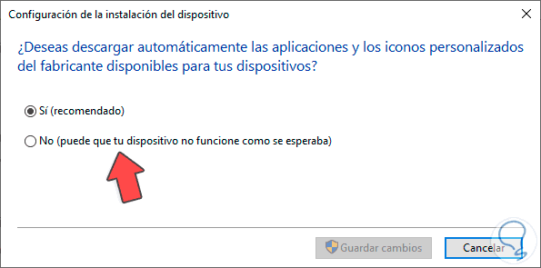 Activamos la casilla “No” y damos clic en “Guardar cambios”:
