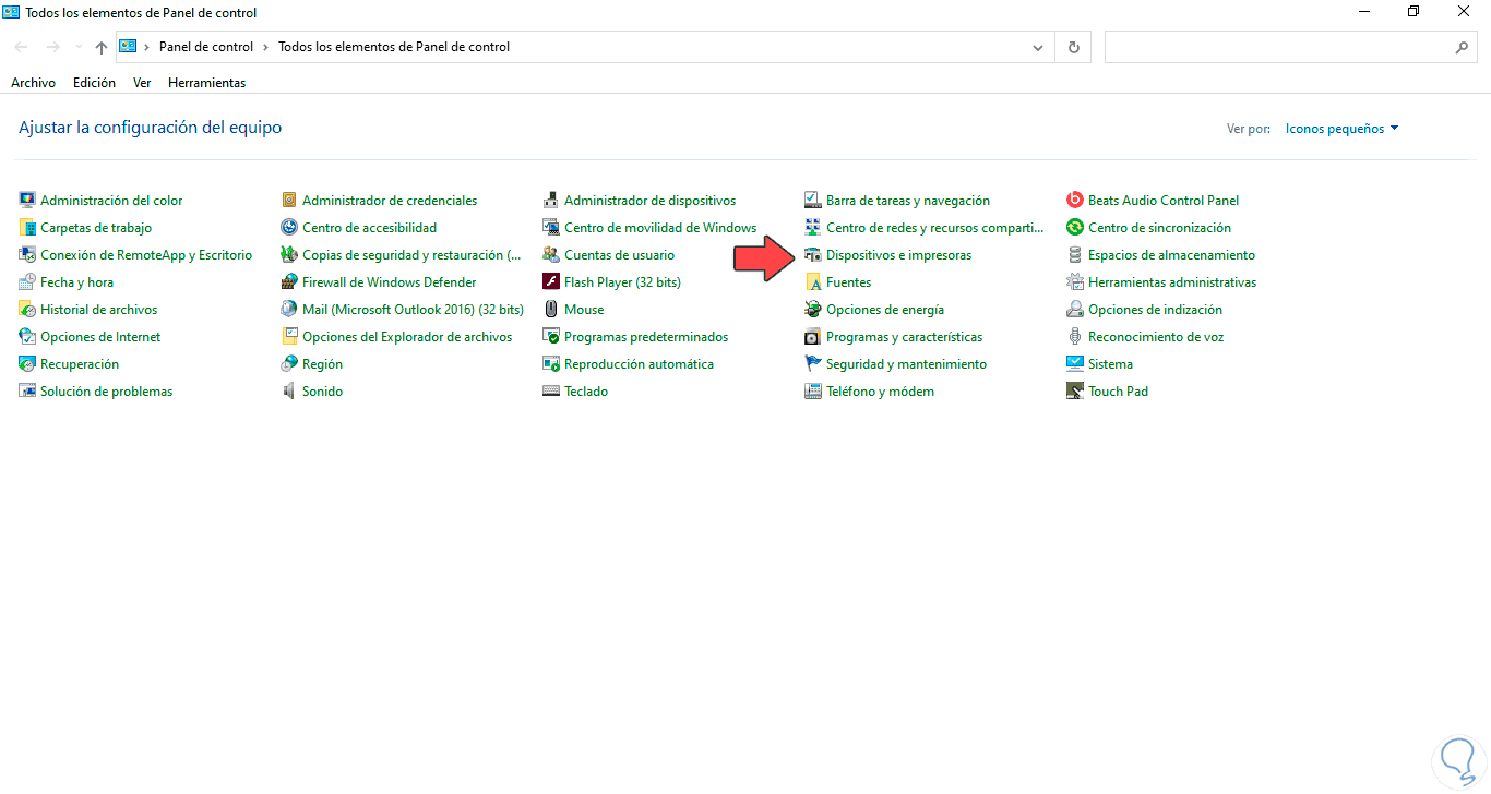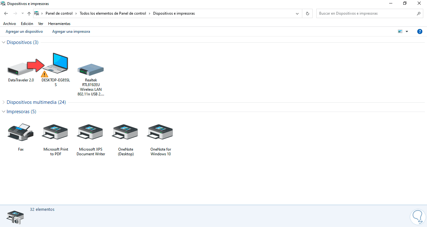 Damos clic en “Dispositivos e impresoras” y veremos lo siguiente: