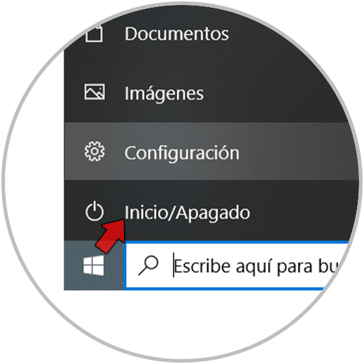 Para poder reiniciar nuestro equipo si pulsamos en la tecla Windows para abrir el menú inicio veremos el icono de opciones de energía “Inicio/Apagado”