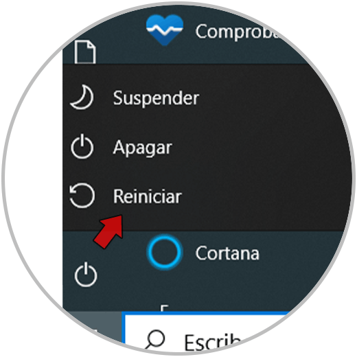 Aquí veremos que nos dará varias opciones entre las que está “Reiniciar”.