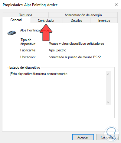 Pulsamos la tecla Enter para abrir las propiedades del controlador: