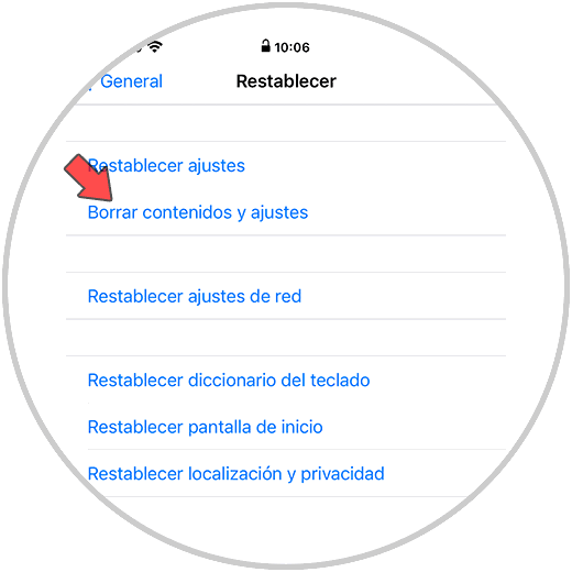 Lo siguiente que debes hacer es pulsar sobre "Borrar contenidos y ajustes"