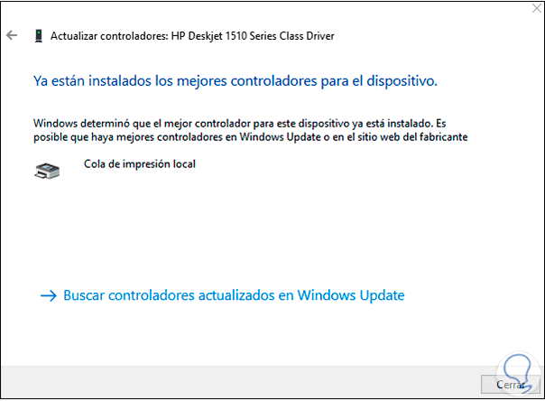 Esto se encarga de que Windows 10 haga la búsqueda de los controladores más recientes desde Windows Update: