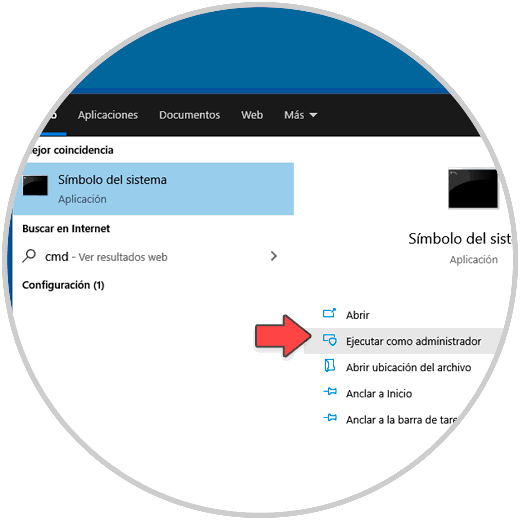 Después de este proceso, accedemos a la consola del símbolo del sistema como administradores: