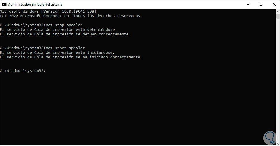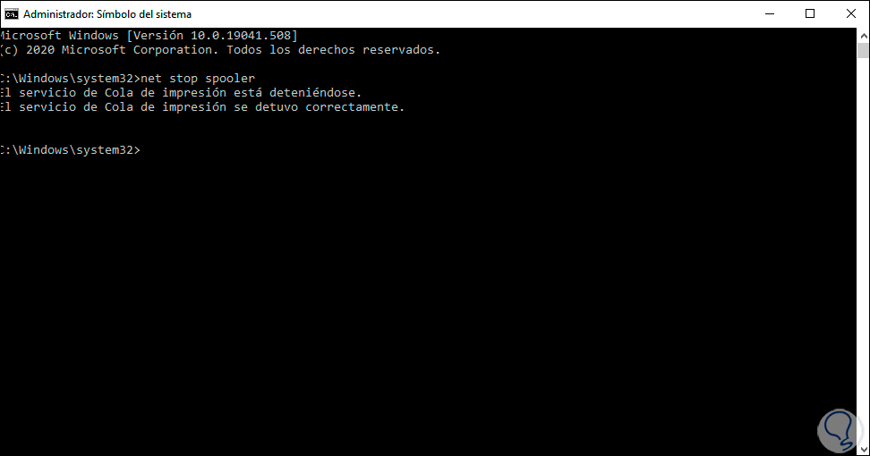 En la consola en primer lugar detenemos el servicio de impresión con el siguiente comando: