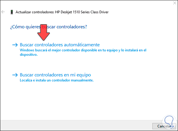 En la ventana emergente desplegada seleccionamos “Buscar controladores automáticamente”: