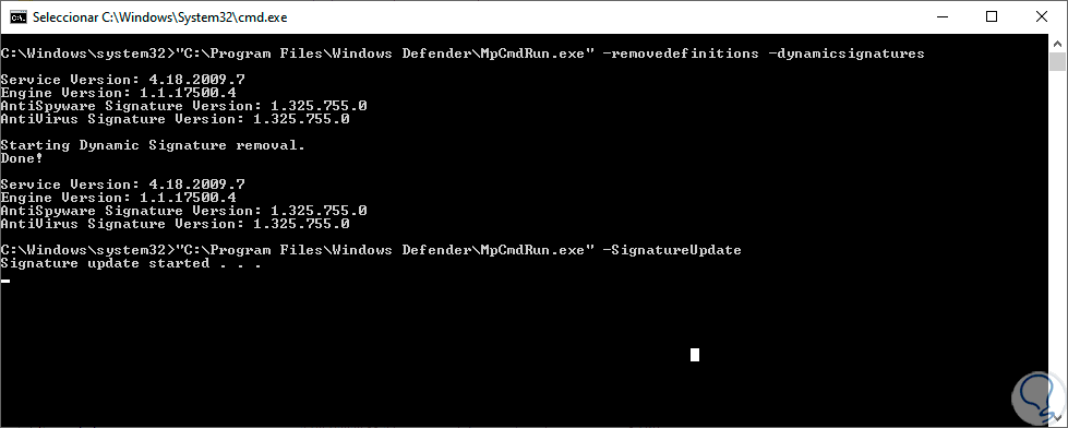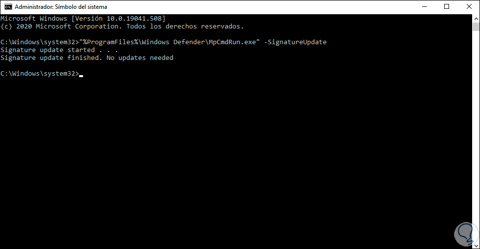 Este es un método que implica el uso de ciertos comandos para buscar y aplicar las actualizaciones para Windows Defender.