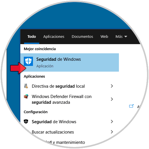 Para esto vamos al buscador de Inicio e ingresamos “seguridad”, en los resultados desplegados seleccionamos “Seguridad de Windows”: