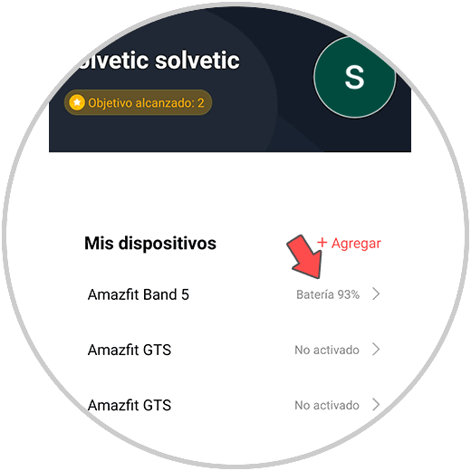Una vez dentro del perfil, selecciona la banda que tienes sincronizada que en este caso es Amazfit band 5.