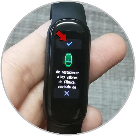 Finalmente verás que tienes la opción de "Reseteo de fábrica" para que la pulsera quede completamente borrada.