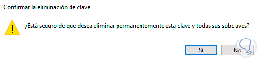 En la ventana emergente damos clic en Si para borrar esta clave del editor: