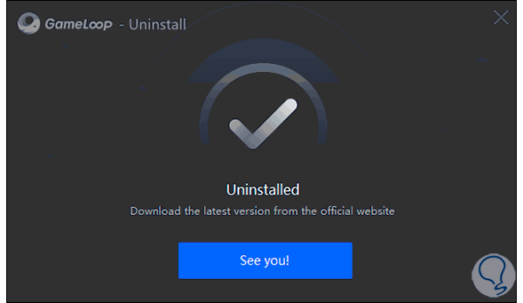 Allí se confirma que GameLoop ha sido desinstalado, al cerrar esta ventana se realizará la desinstalación de los archivos residuales:
